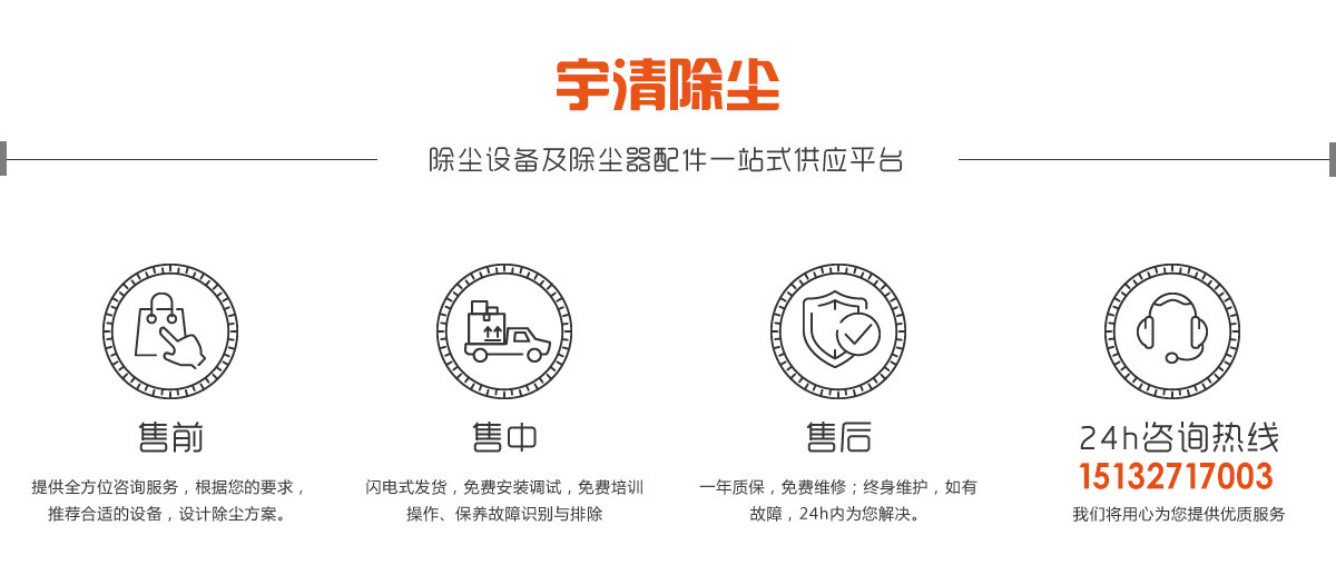宇清除塵設備有限公司擁有多年布袋除塵器及配件的生產(chǎn)經(jīng)驗,公司擁有好的生產(chǎn)設備,標準化的生產(chǎn)工廠, 以“實體生產(chǎn),保證貨源,售后無憂”的經(jīng)營理念服務廣大客戶。